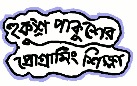 তুমি হচ্ছো হুকুশ পাকুশ। তুমি সারারাত ফোঁস ফোঁস করে ঘুমাও আর সকালে উঠে যখন তোমার মনে পড়ে যে তুমি প্রোগ্রামিং জানো না তখন তোমার খুব মন খারাপ হয়। তারপর তুমি হুপুশ হাপুশ করে কান্নাকাটি করো আর ভাবো যে তোমাকে দিয়ে কখখনো প্রোগ্রামিং হবে না।